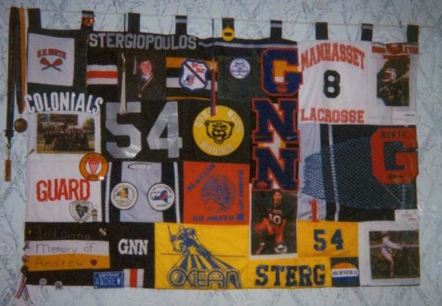 A Memory Quilt, composed of jerseys, letters and other items, commemorating Andrew’s life and achievements.
